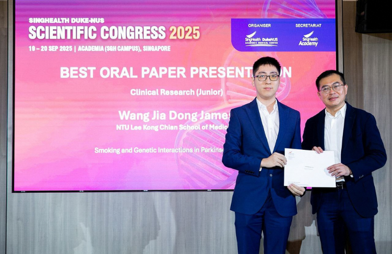 As a final year medical student at Nanyang Technological University, Singapore’s (NTU Singapore) Lee Kong Chian School of Medicine (LKCMedicine), James Wang has seen first-hand how smoking can maim and claim lives. So, when he was observing a Parkinson’s disease (PD) clinic, he was surprised that most of the patients were non-smokers. He mentioned this to the attending physician, Prof Tan Eng King, Senior Consultant, Neurology, NNI, who is also James’s mentor under NNI’s Neuroscience Academic Research Achievers (NARA) mentorship programme.